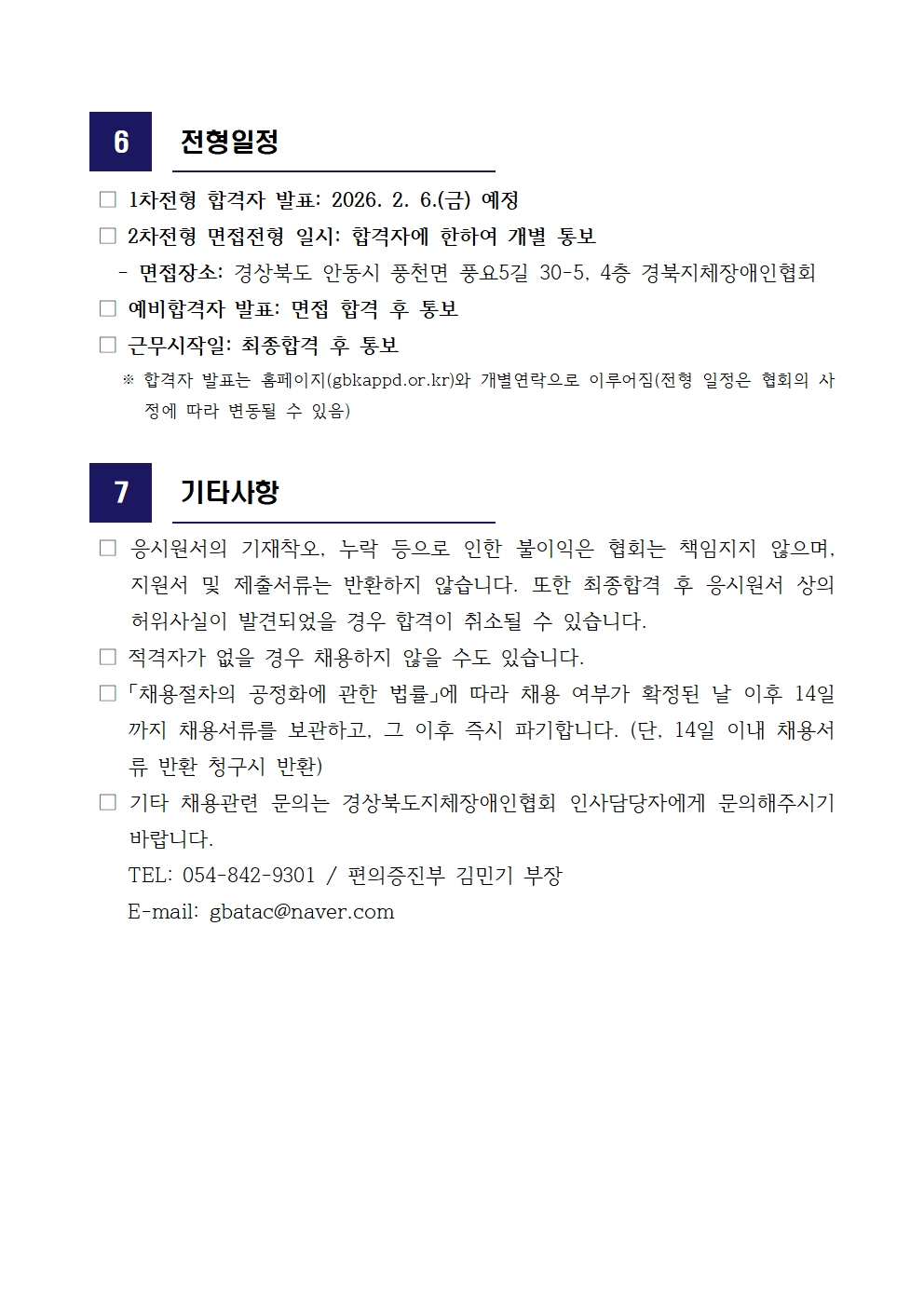 경북장애인편의증진기술지원센터 기술직원 공개채용(포항시센터) 최고관리자 0 12 01.21 10:08 2026.01.21 10:08 입사지원서.hwp (26.5K) + 1 2026.01.21 10:08 01. 채용공고문포항시-기술직원.hwp (65.5K) + 1 경북장애인편의증진기술지원센터 기술직원 공개채용(포항시센터)