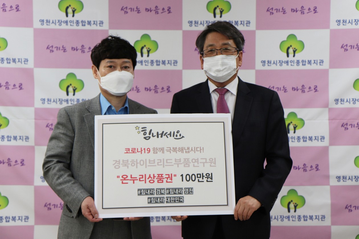 경북하이브리드부품연구원에서 전달한 온누리 상품권은 코로나바이러스감염증-19로 어려움을 겪고 있는 영천시 지역 저소득·중증 장애인 가정의 생계지원에 사용될 예정이다.