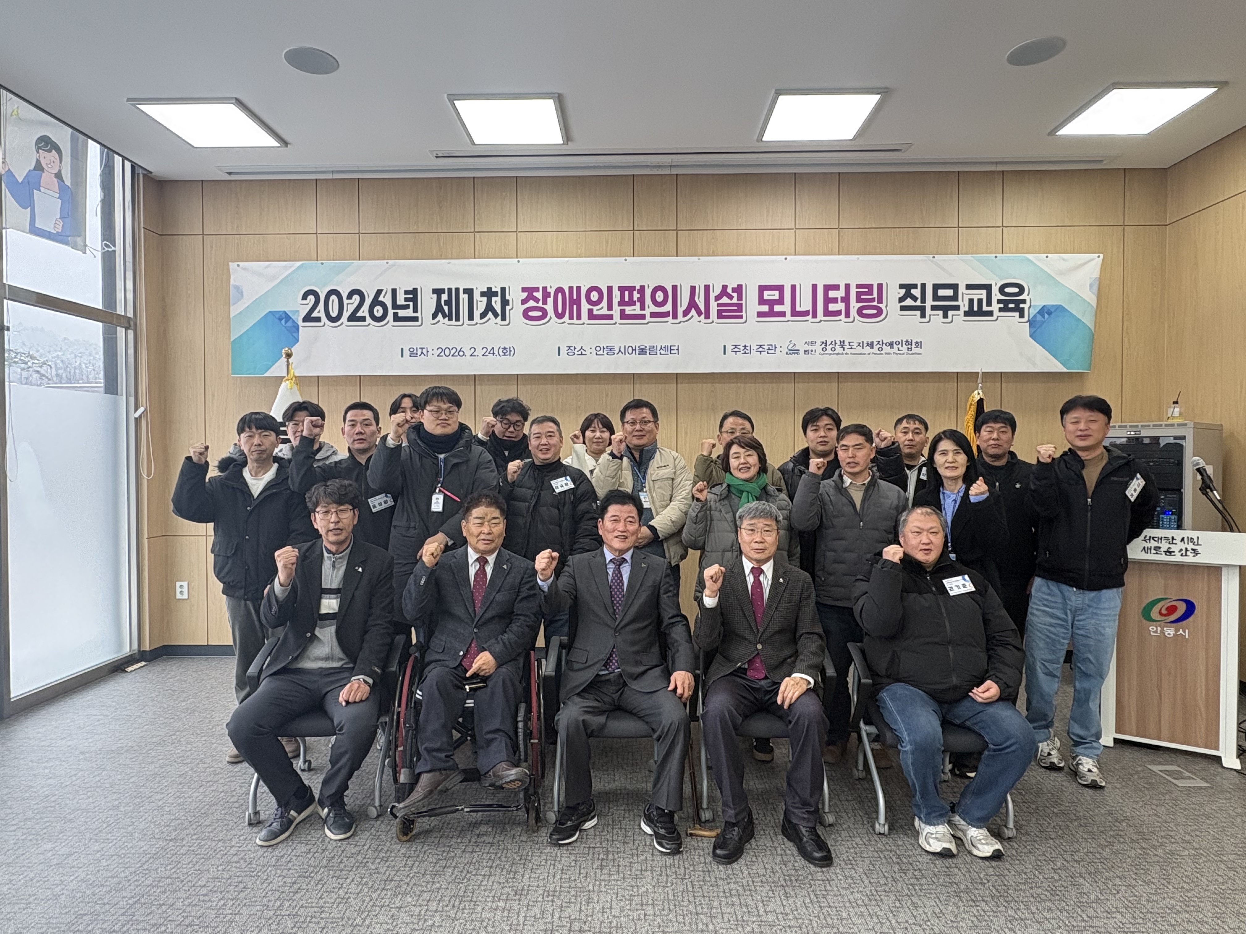 경북지체장애인협회(협회장 오태희, 이하 경북협회)는 장애인편의시설의 유지·관리 실태를 점검하고 이용자 중심의 접근성 개선을 추진하기 위해, ‘장애인편의시설 모니터링 사업’을 신규로 추진하고 이에 따른 전문인력 역량 강화 교육으로 2월 24일(화) 안동시 어울림센터에서 ‘2026년 제1차 장애인편의시설 모니터링 직무교육’을 실시했다.