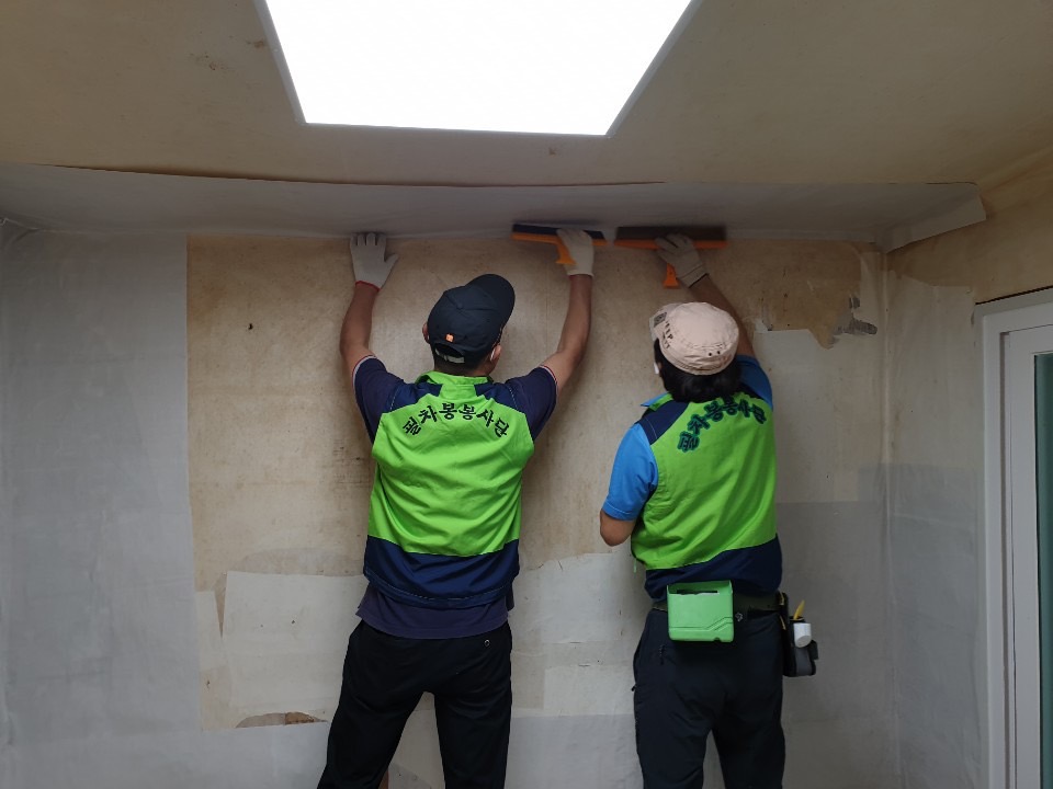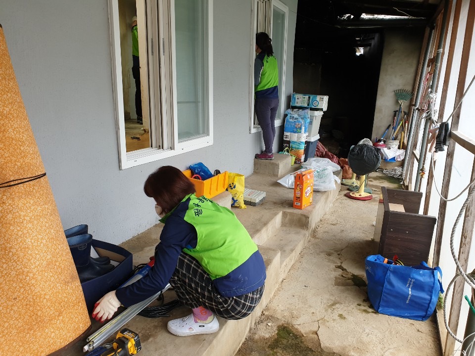 이번 사업은 ‘필요할 때 찾아가는 봉사단(단장 라상진)’을 연계하여 진행되었으며, 장판 교체, 전기안전점검, 환경미화를 통해 쾌적한 주거환경이 되도록 도움의 손길을 전했다.