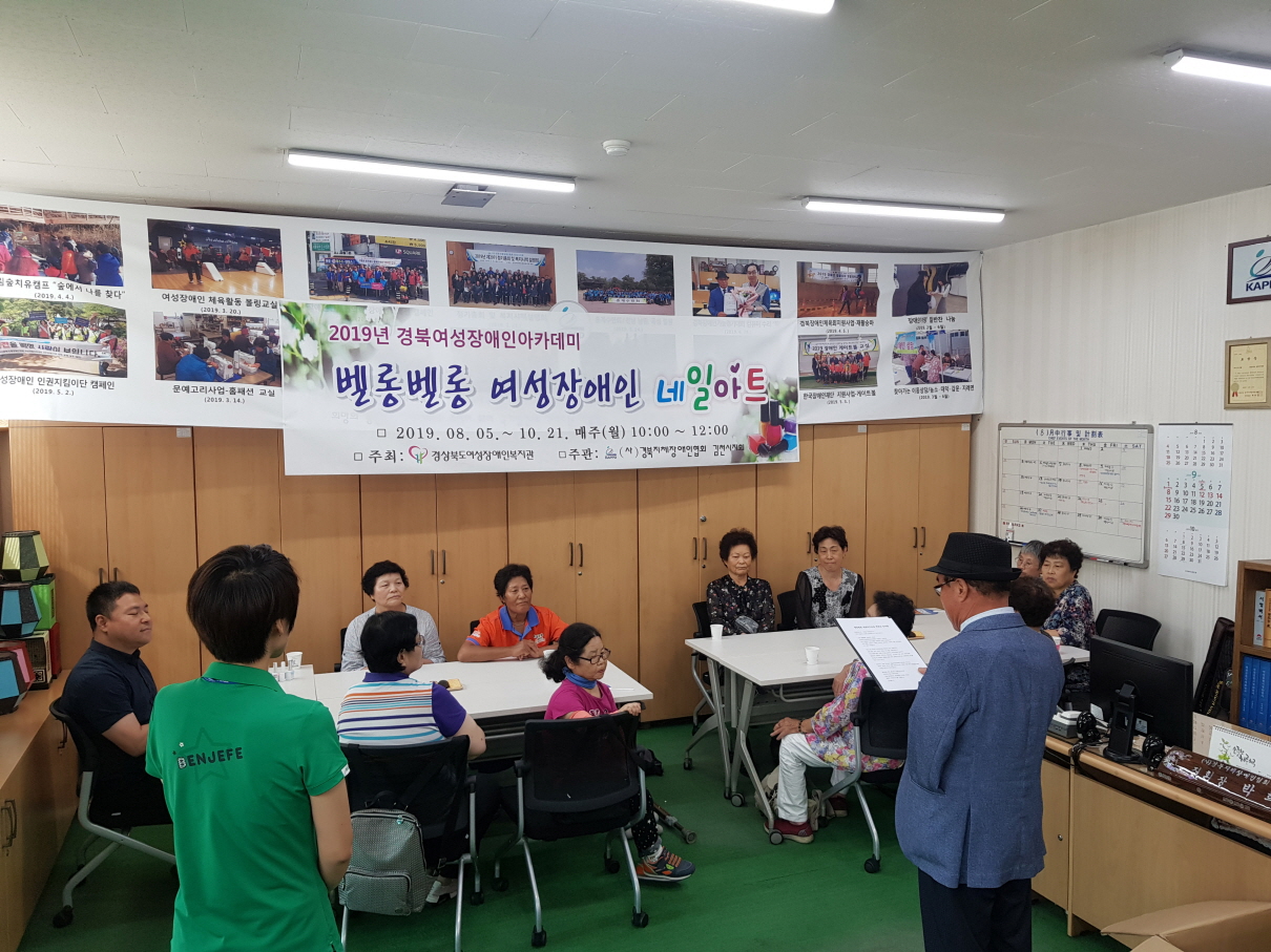(사)경북지체장애인협회 김천시지회(지회장 박희만)는 8월 5일(월) 지회 회의실에서 여성장애인 및 임직원 등 15명이 참석한 가운데 “벨롱벨롱(제주방언: 반짝이다)여성장애인 네일아트 교실 개강식을 가졌다.