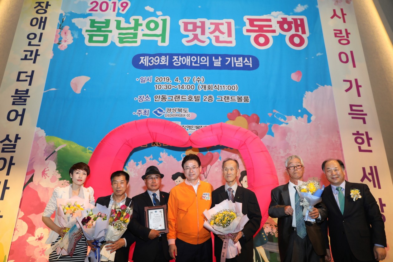 (사)경상북도 지체장애인협회 김천시지회 박희만 지회장이 지난 4월 17일 안동그랜드호텔에서 열린 경상북도 ‘제39회 장애인의 날’ 기념식에서 경북도지사 표창패를 수상 하였다.