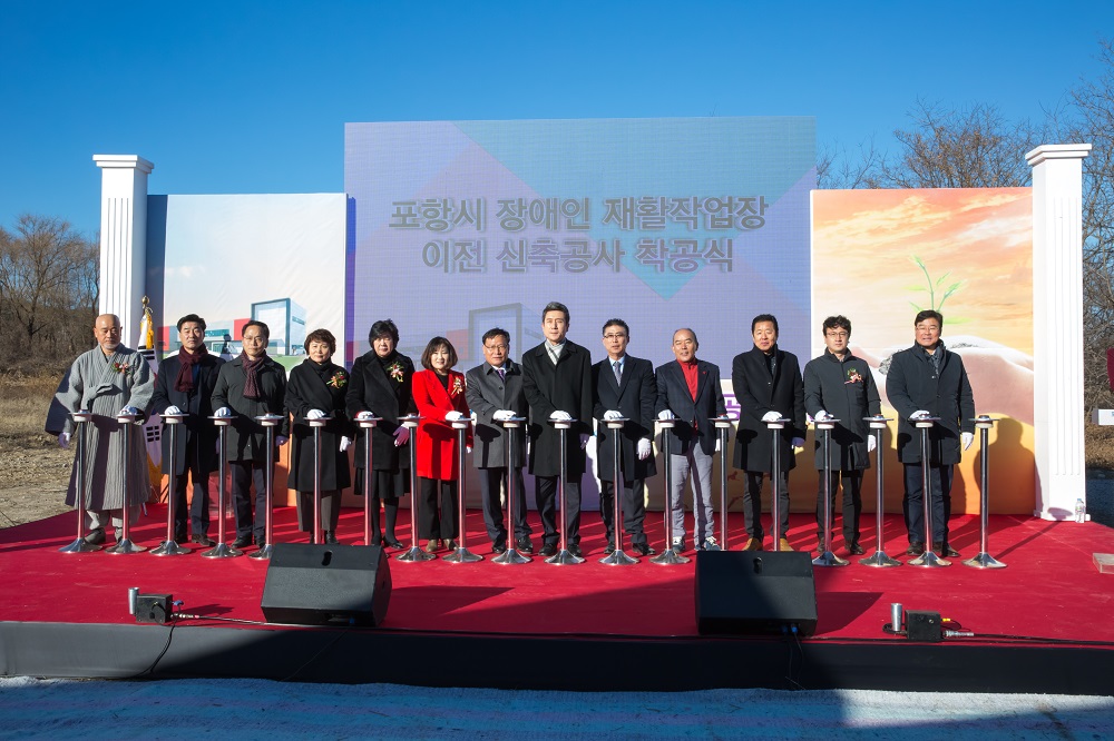 포항시는 1224일 포항시장애인재활작업장 이전 신축공사 착공식을 개최했다. 청하면 월포리 신축부지에서 진행된 이날 행사에는 이강덕 포항시장을 비롯해 한창화 경상북도의원, 이나겸 포항시의회 복지환경위원장, 차동찬 예결특별위원장 등 지역 시도의원들과 사단법인 한국지체장애인협회 김광환 중앙회장을 비롯한 경북 23개 시군 지회장 및 포항시 관내 장애인단체장들이 대거 참석해 자리를 빛냈다.