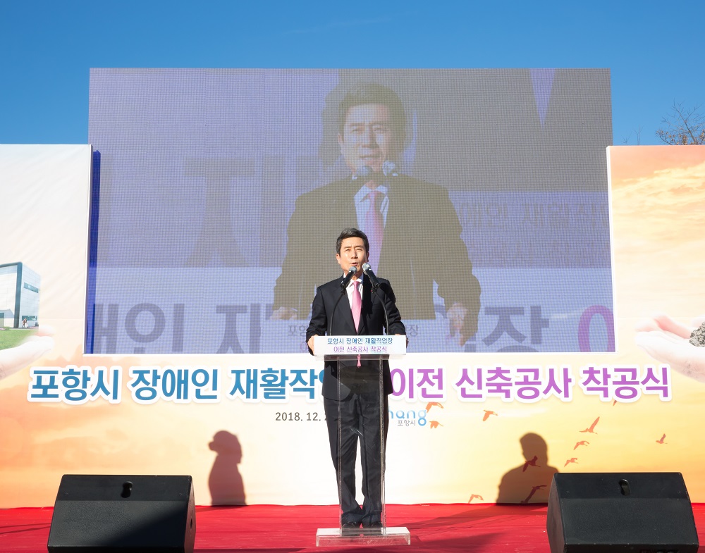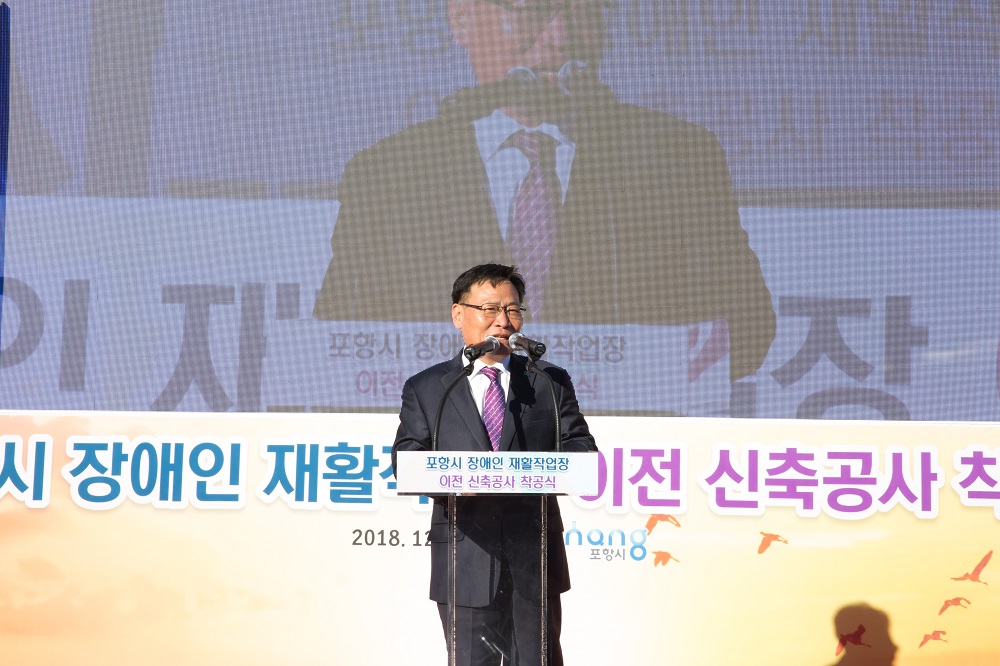 이강덕 포항시장은 장애인 일자리 창출은 장애인이 진정한 삶의 주체로서 자립할 수 있는 최고의 복지정책이며 나아가 시민 모두가 행복한 포항으로 발전하는 첫걸음이라며 장애인근로자들의 든든한 울타리 역할을 수행할 포항시장애인재활작업장 건립에 많은 관심과 격려를 부탁드린다고 말했다.