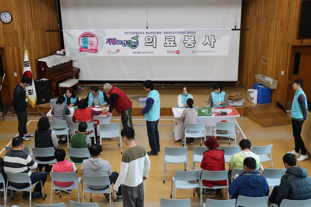 의료봉사는 영남대병원, 경북대치과병원 의료진 및 건보공단 직원 등 25명이 참여해 가정의학과, 치과, 안과 분야에 걸쳐 진료를 했다.