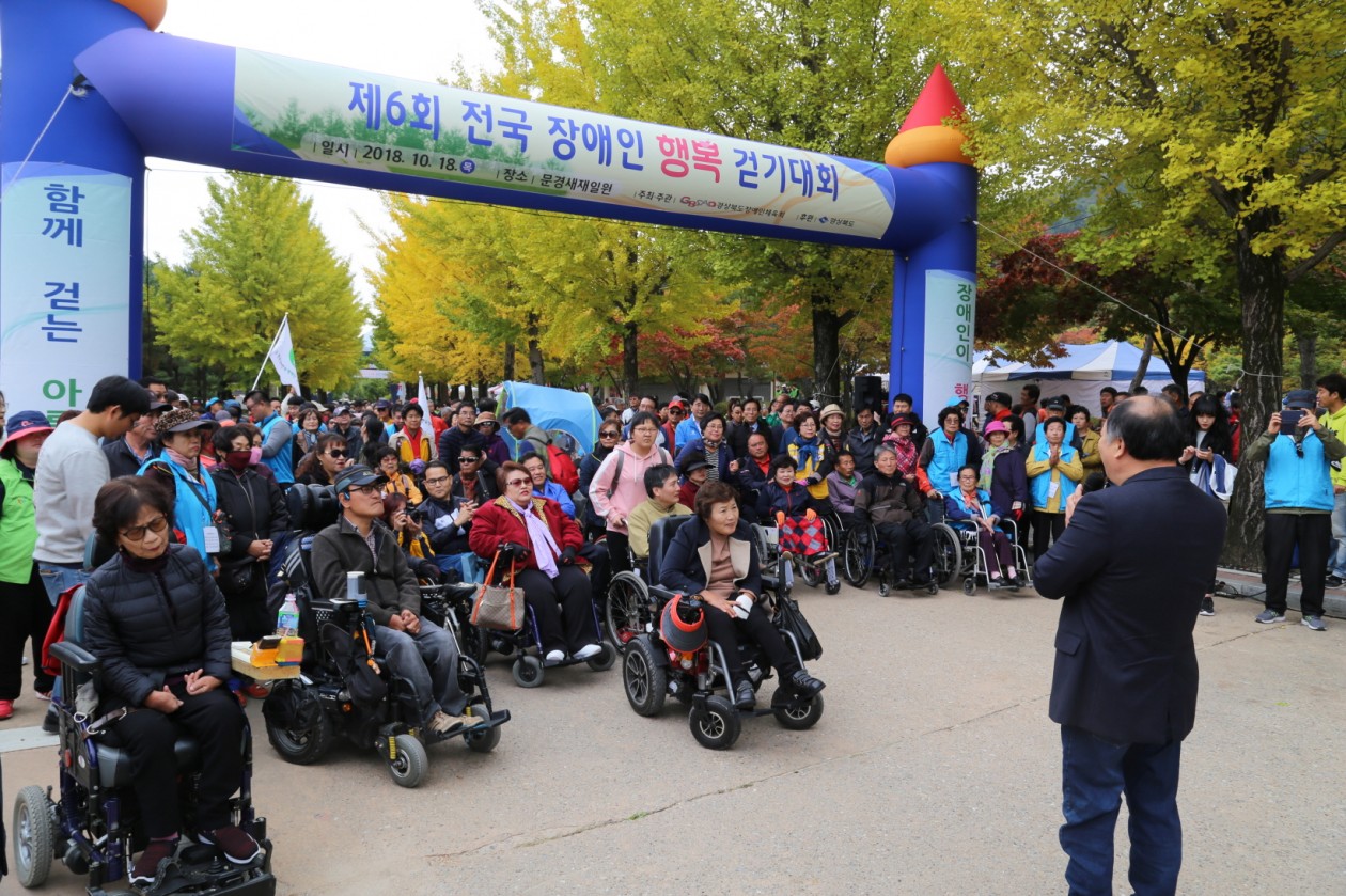경상북도지체장애인협회(이하 경북협회) 박선하협회장은 10월 18일 참가한 「제6회 전국 장애인행복걷기대회」에서 주최측 요청에 의한 순서로 대회 걷기에 앞서 출발선 구호를 외쳤다.