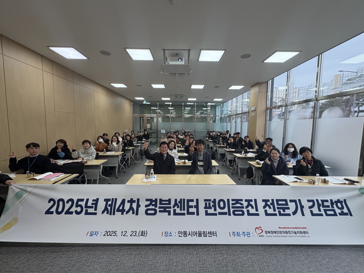 경북장애인편의증진기술지원센터(센터장 오태희, 이하 경북센터)는 12월 23일(화) ‘2025년 제4차 경북센터 편의증진 전문가 간담회’와 ‘경북센터 연구사업 및 실태조사 결과보고회’를 함께 개최했다.