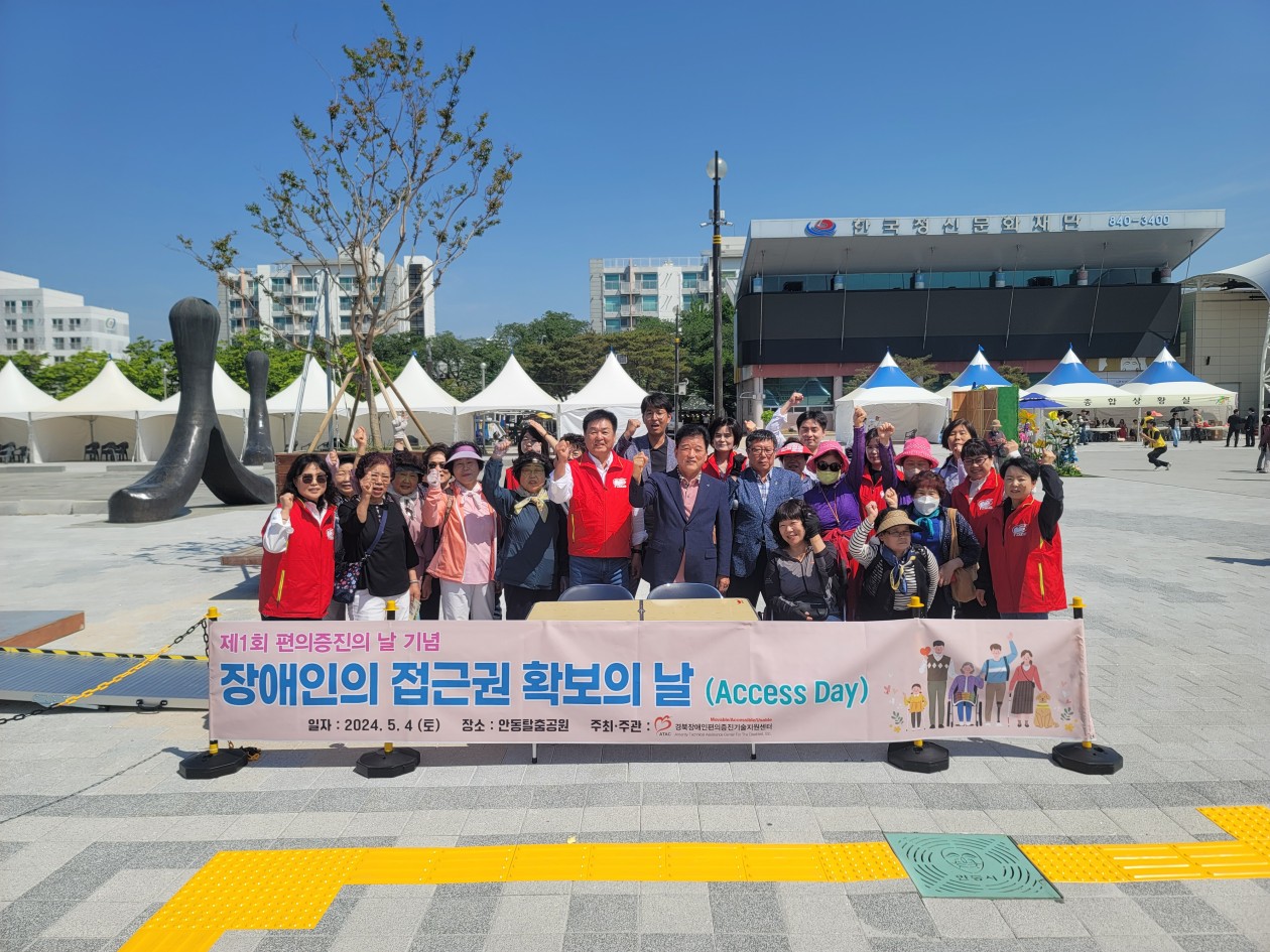 제1회 편의증진의 날 기념, 경북센터 Access Day(장애인의 접근권 확보의 날) 최고관리자 0 821 2024.05.09 16:08 제1회 편의증진의 날 기념, 경북센터 Access Day(장애인의 접근권 확보의 날)2024. 5. 4.(토) 안동탈춤공원(2024 안동시 복지박람회 행사장 일원)